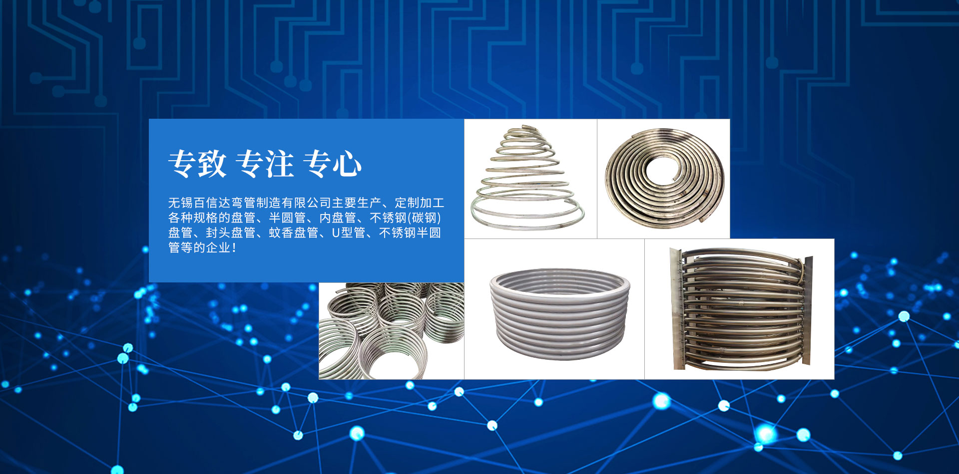 無錫百信達彎管制造有限公司位于經(jīng)濟發(fā)達、風景秀麗的太湖之濱。本公司擁有完整、科學的質(zhì)量管理體系,公司的誠信、實力和產(chǎn)品質(zhì)量獲得業(yè)界的認可。公司專注生產(chǎn)、定制加工各種規(guī)格的盤管、半圓管、內(nèi)盤管、不銹鋼盤管、封頭盤管、蚊香盤管、U型管、不銹鋼半圓管、碳鋼盤管等的企業(yè)。本公司設(shè)計加工的彎管設(shè)備,質(zhì)量精良、結(jié)構(gòu)合理,效率高、操作簡易、經(jīng)久耐用。公司已經(jīng)承接了各地多個大型場館工程項目的彎管加工,屢次得到了多家大客戶的好評。努力滿足客戶的需要,不斷提高自身水平是公司追求的目標。歡迎社會各界朋友蒞臨無錫百信達彎管制造有限公司參觀、指導和業(yè)務(wù)洽談!